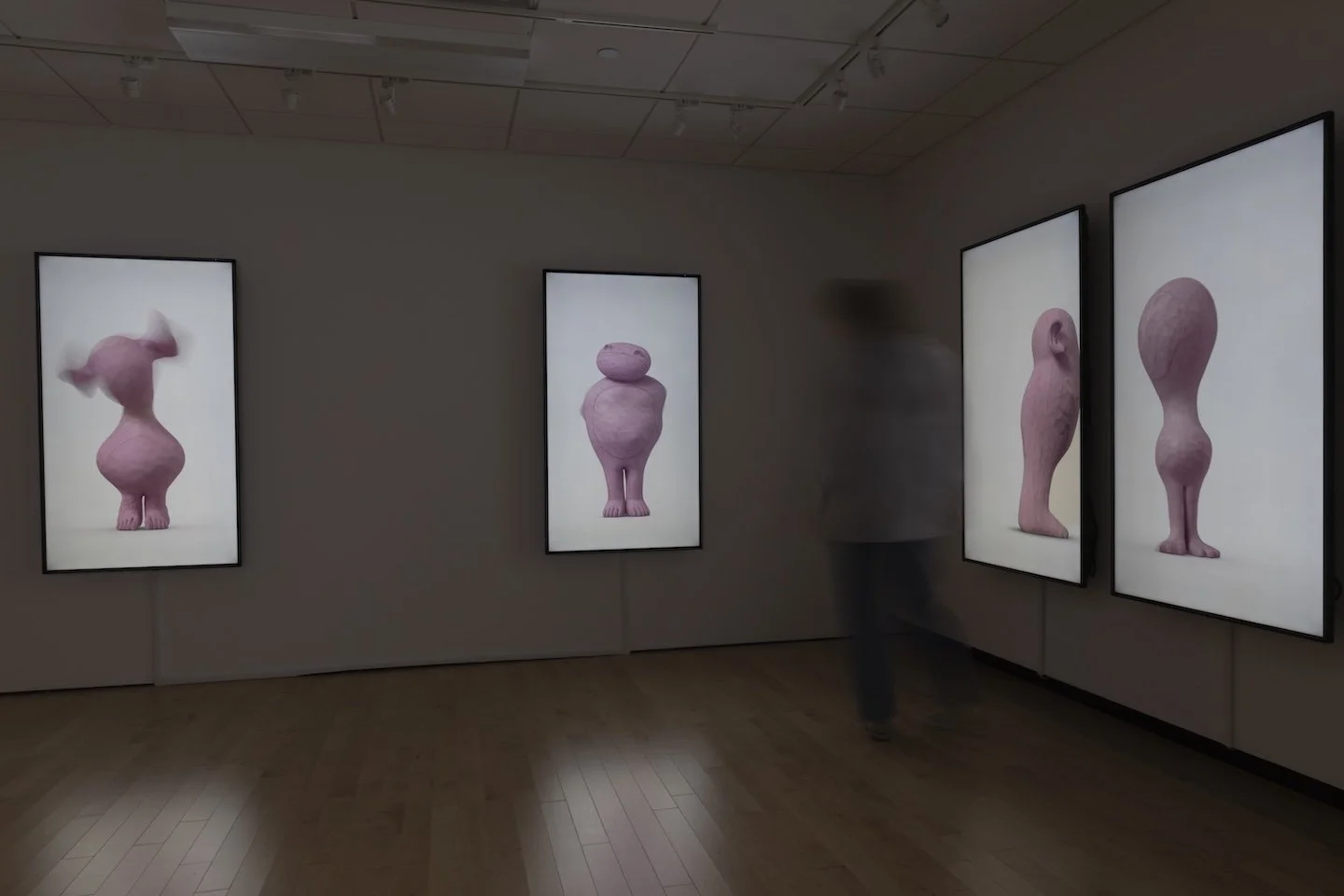 The Pinks, 3 of the 6 animation screens at the Woodstock Art Gallery, Woodstock, Ontario July 26, 2025 to January 24, 2026